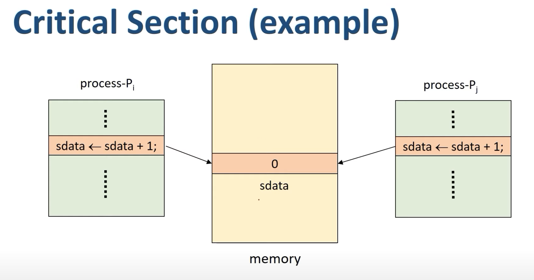 - 두 개의 프로세스 P_i와 P_j가 각자 sdata를 1 증가시키는 코드(sdata = sdata + 1)를 실행하려 한다.