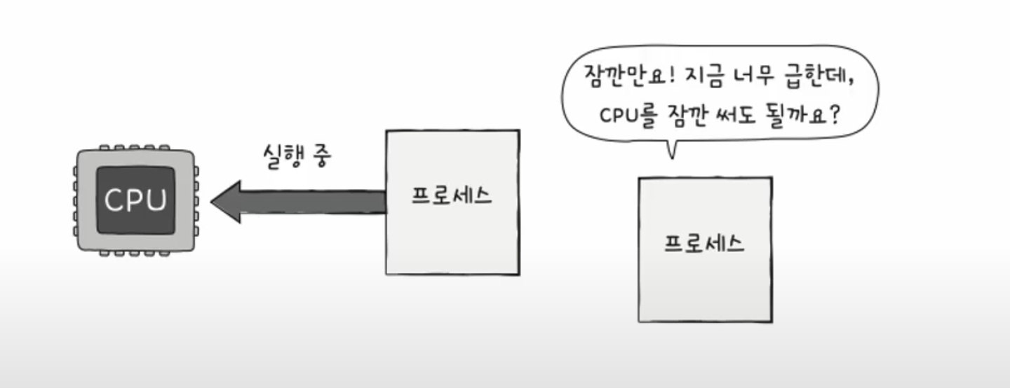 어떤 프로세스/스레드는 할당된 CPU를 다 쓸때까지 쭉 점유하기도 하고, 어떤 경우에는 운영체제가 강제로 중단시키고 다른 프로레스/스레드에게 CPU를 넘기기도한다.