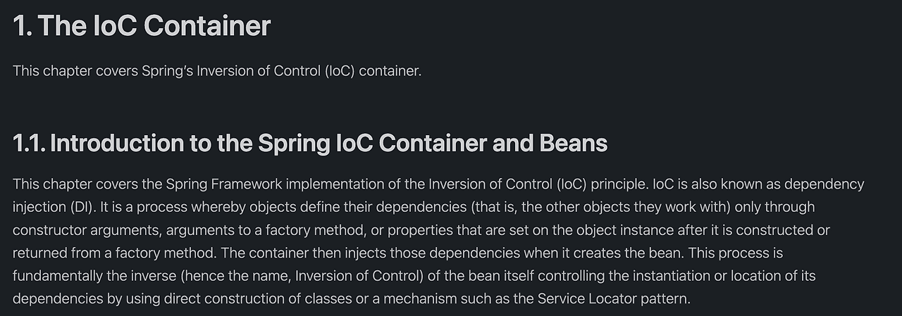 - IoC에 대해 ‘IoC는 DI로도 알려져 있다’ 라고 소개하고 있다.