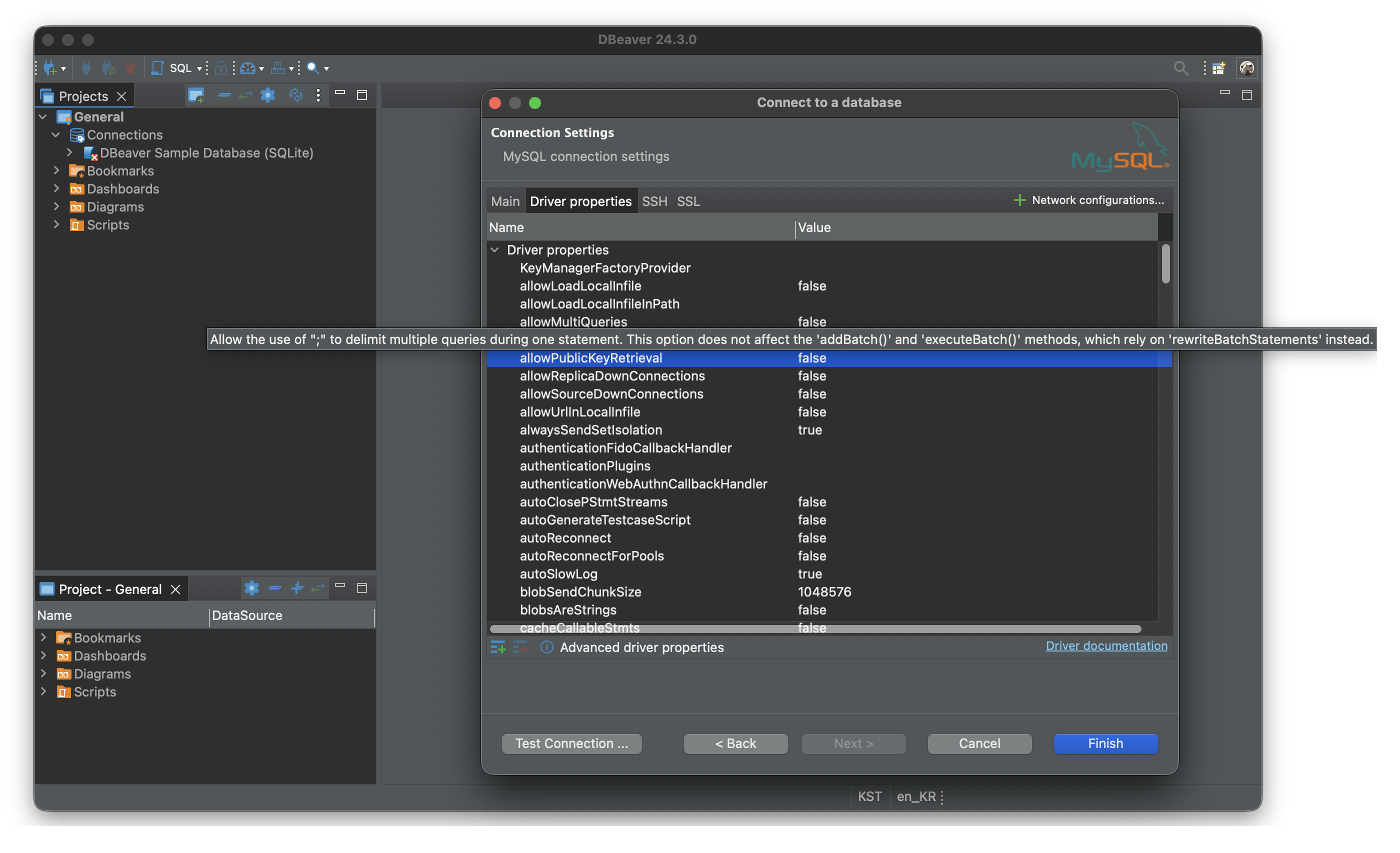 - DBeaver 에서 MySQL 연결 시도 중 Public Key Retrieval is not allowed 에러 발생