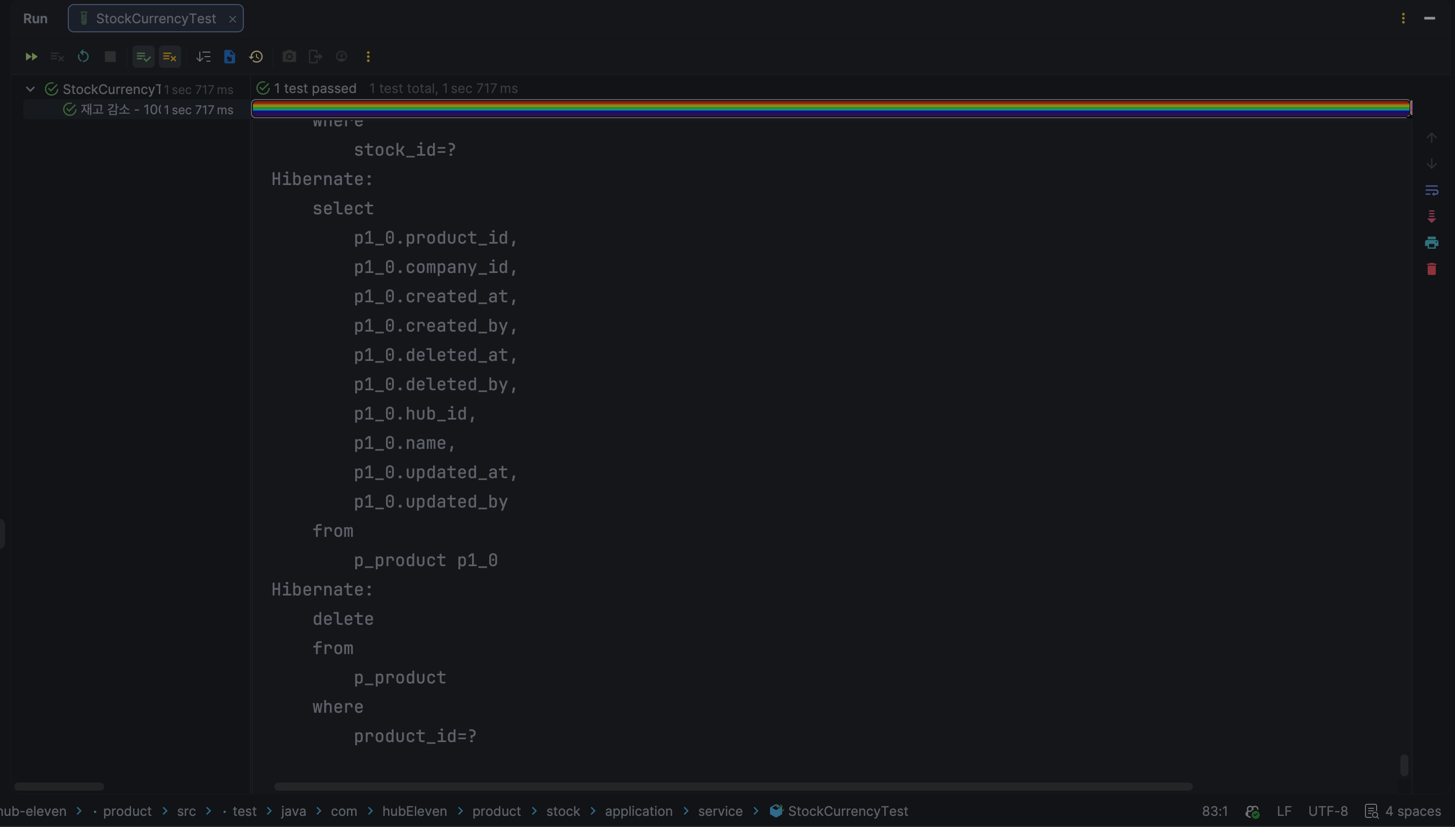 - 재고 100개에 대해 1개씩 100번 동시 차감했을 때 0이 되어야 하는데, 실제로는 88이 남아 동시성 제어가 제대로 되지 않아 일부 차감이 반영되지 않은 상태에서 발생한 AssertionFailedError가 발생했다.