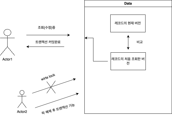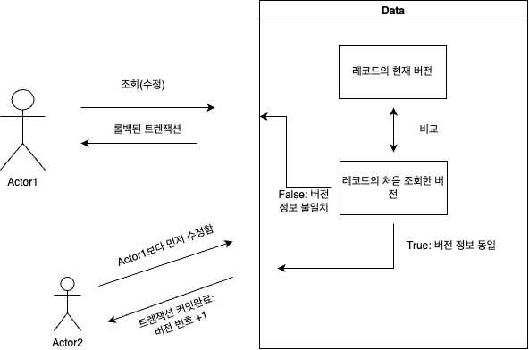 - 먼저 데이터를 읽은 후에 update를 할 때 내가 읽은 버전이 맞는 확인하며 업데이트한다.